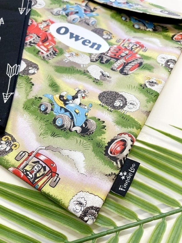 Through my own personal experience with my school aged children we soon found out that the store bought book bags turned to shreds within a few weeks of use. These fabric covers are fantastic and last the years through. They can be purchased as is or you can choose to have a first name on it.