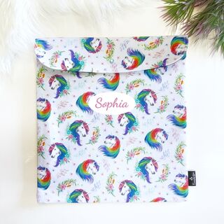 Through my own personal experience with my school aged children we soon found out that the store bought book bags turned to shreds within a few weeks of use. These fabric covers are fantastic and last the years through. They can be purchased as is or you can choose to have a first name on it.